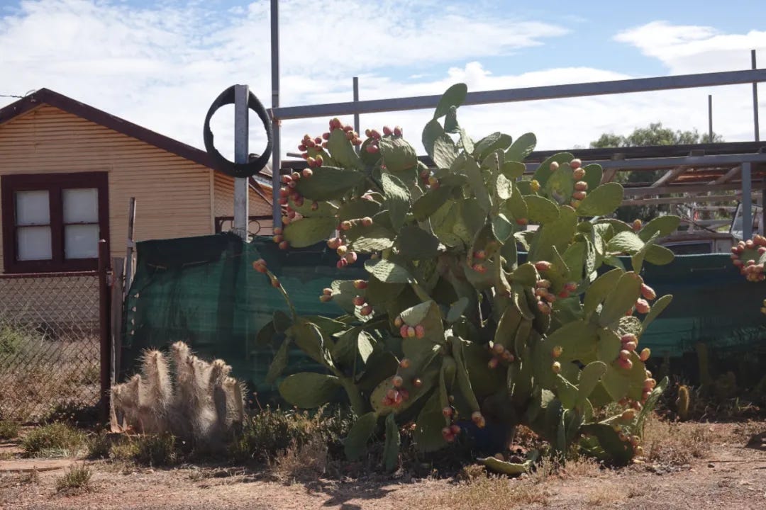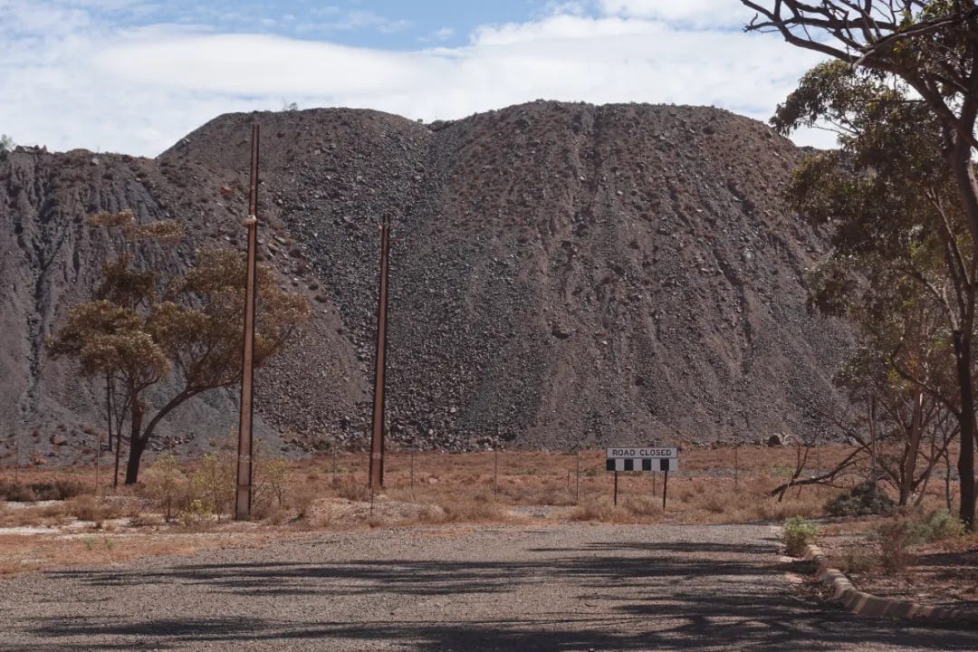鹤岗当然不止110个人,可能一栋楼都不止110个人,Iron Knob也许是更极端版本的鹤岗,开车走在Iron Knob的街上,用死寂来形容一点都不为过。45摄氏度的烈日下,我连下车走一走拍照的欲望都被蒸腾殆尽,随处可见“道路关闭”的牌子以及欠缺维护已经破烂的道路,四散的废旧车辆,和提醒你注意鸸鹋的牌子,当然我没有那么幸运看到鸸鹋。所有能够通往矿山的道路都已经被原来的采矿公司必和必拓BHP封死,不过似乎也可以透过当地的游客中心访问矿坑的观景台,不过这需要提前预约,我只能作罢。